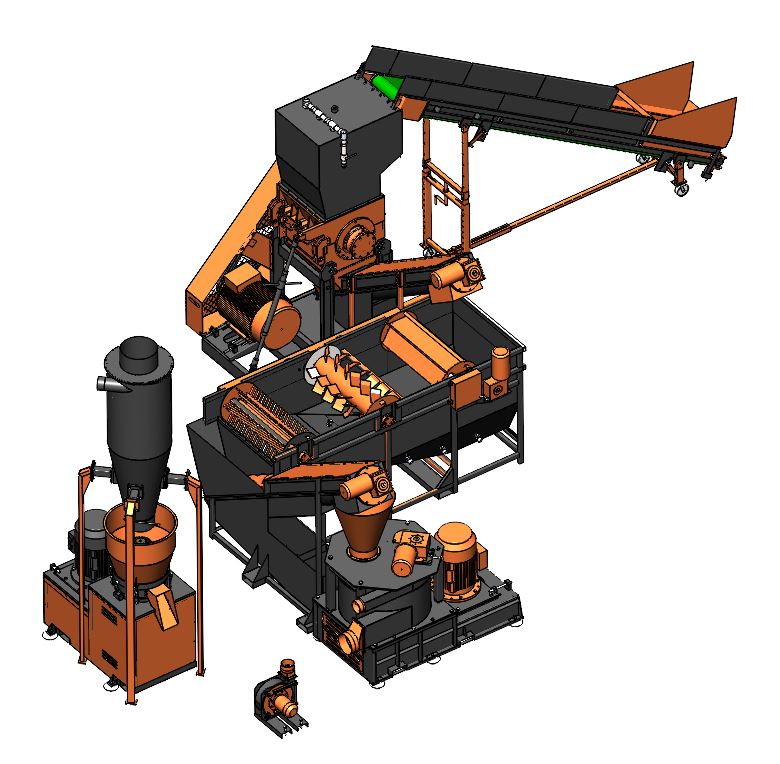 | Состав линии | Дробилка, мойка, агломератор/экструдер, гранулятор |